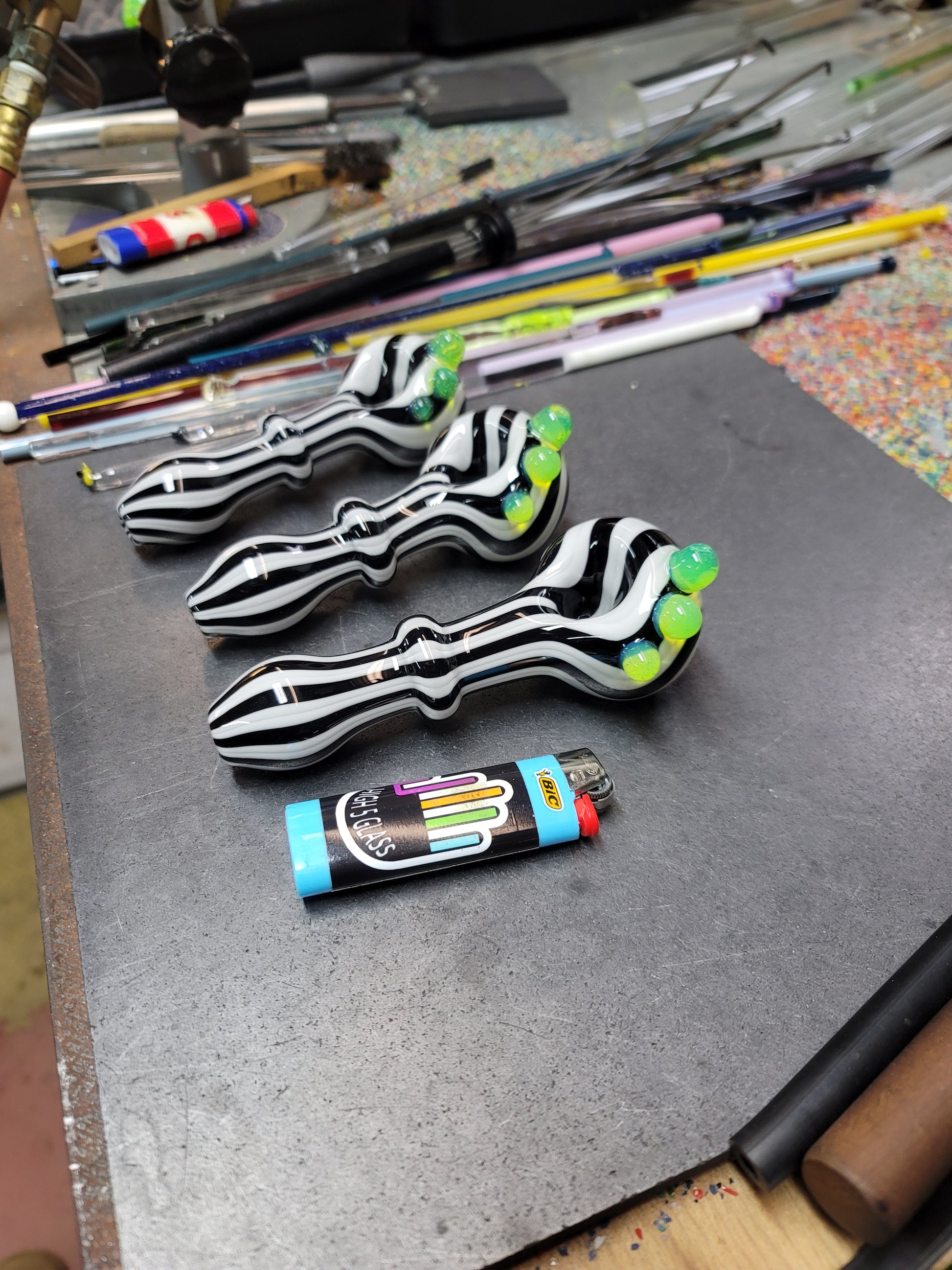 One spoon and one chillum. Very thick hand blown glass made to order. Made and shipped within two weeks of ordering. Color Purchased through Goldengate Glassworks.