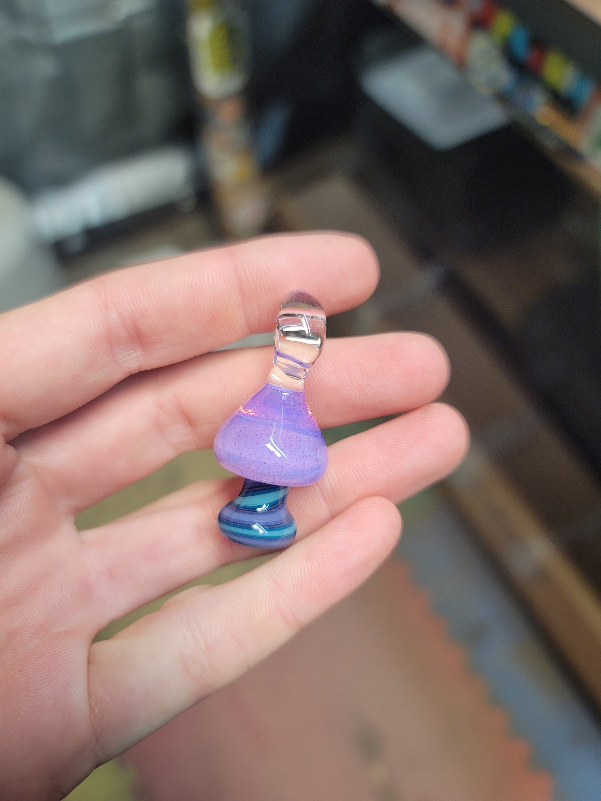 Very thick hand blown glass made to order. About an inch tall without the loop. Let me know if you'd like it a different size. Made and shipped within two weeks of ordering.