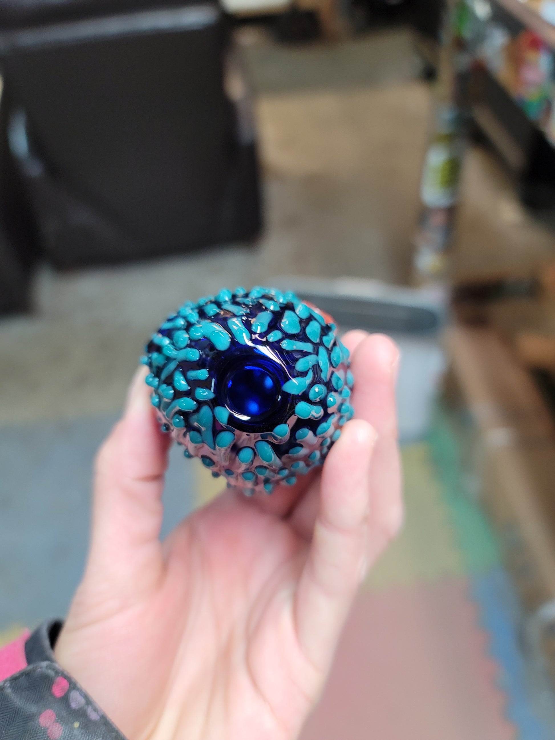 Very thick hand blown glass made to order. I also offer a smaller size on another listing for $55. Made and shipped within two weeks of ordering.