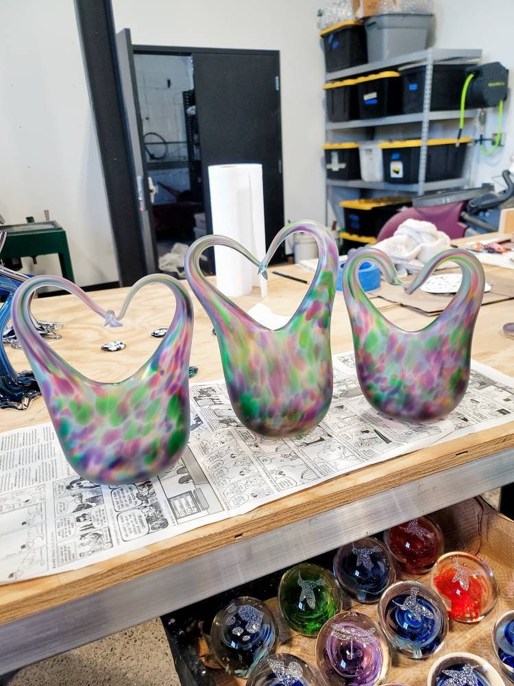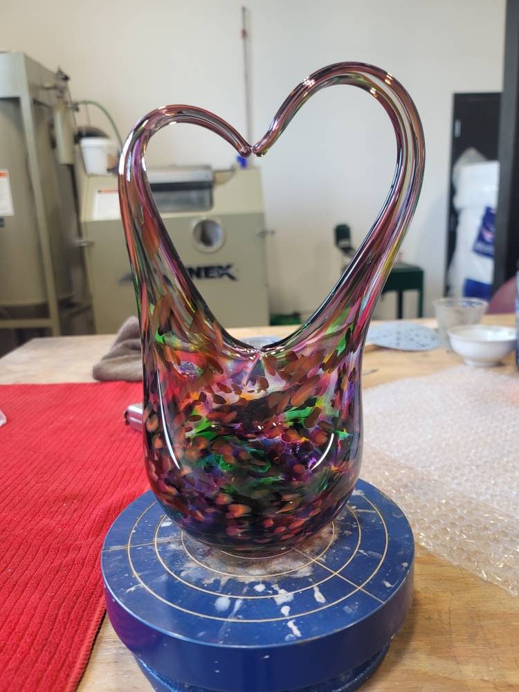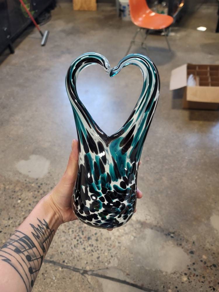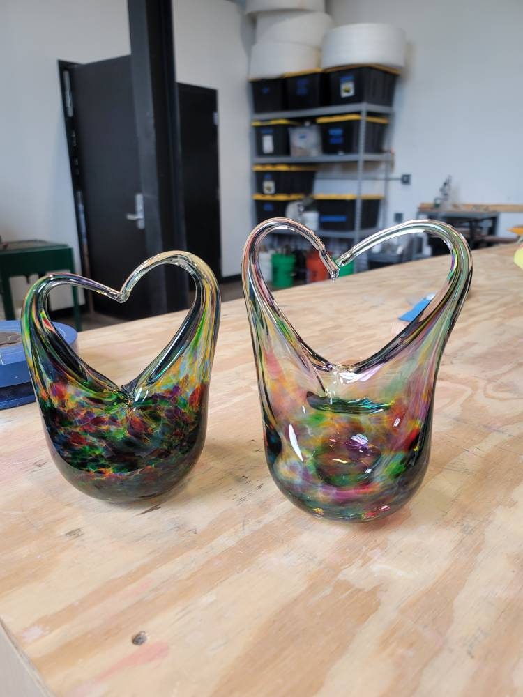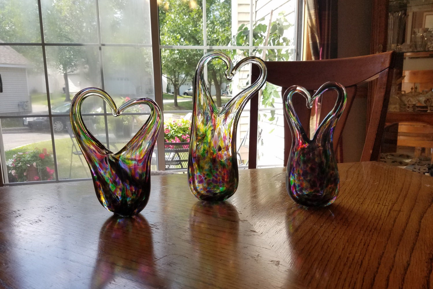 One of a kind hand blown glass heart sculptures made to order. I can make these any color or color mix you would like. These beautiful glass works of art are perfect for Mothers Day, wedding, birthdays, get well gifts or a one of a kind something to say "I love you." Each sculpture will vary slightly in size and shape because they are hand made. Please let me know what color(s) you would like when ordering.