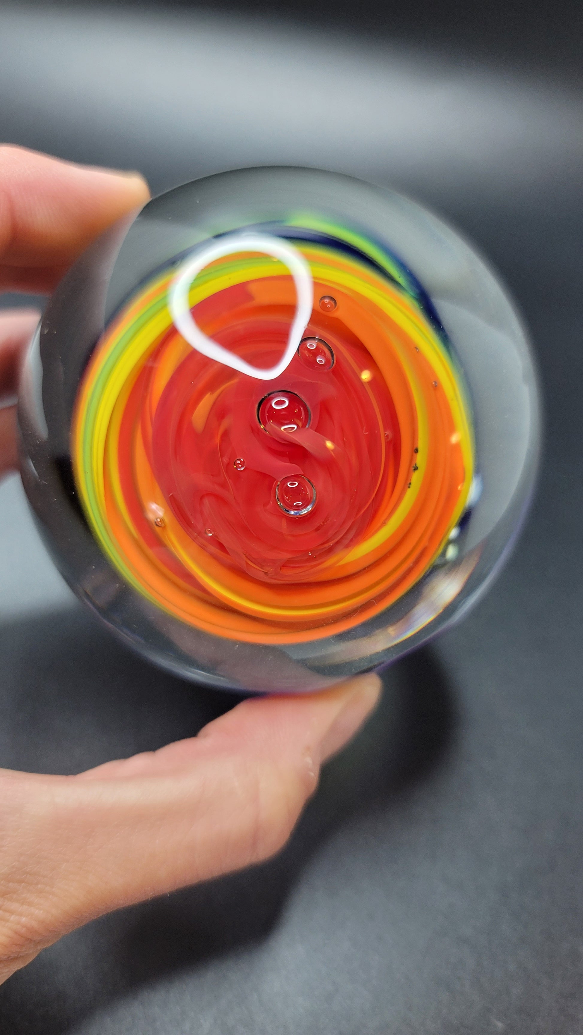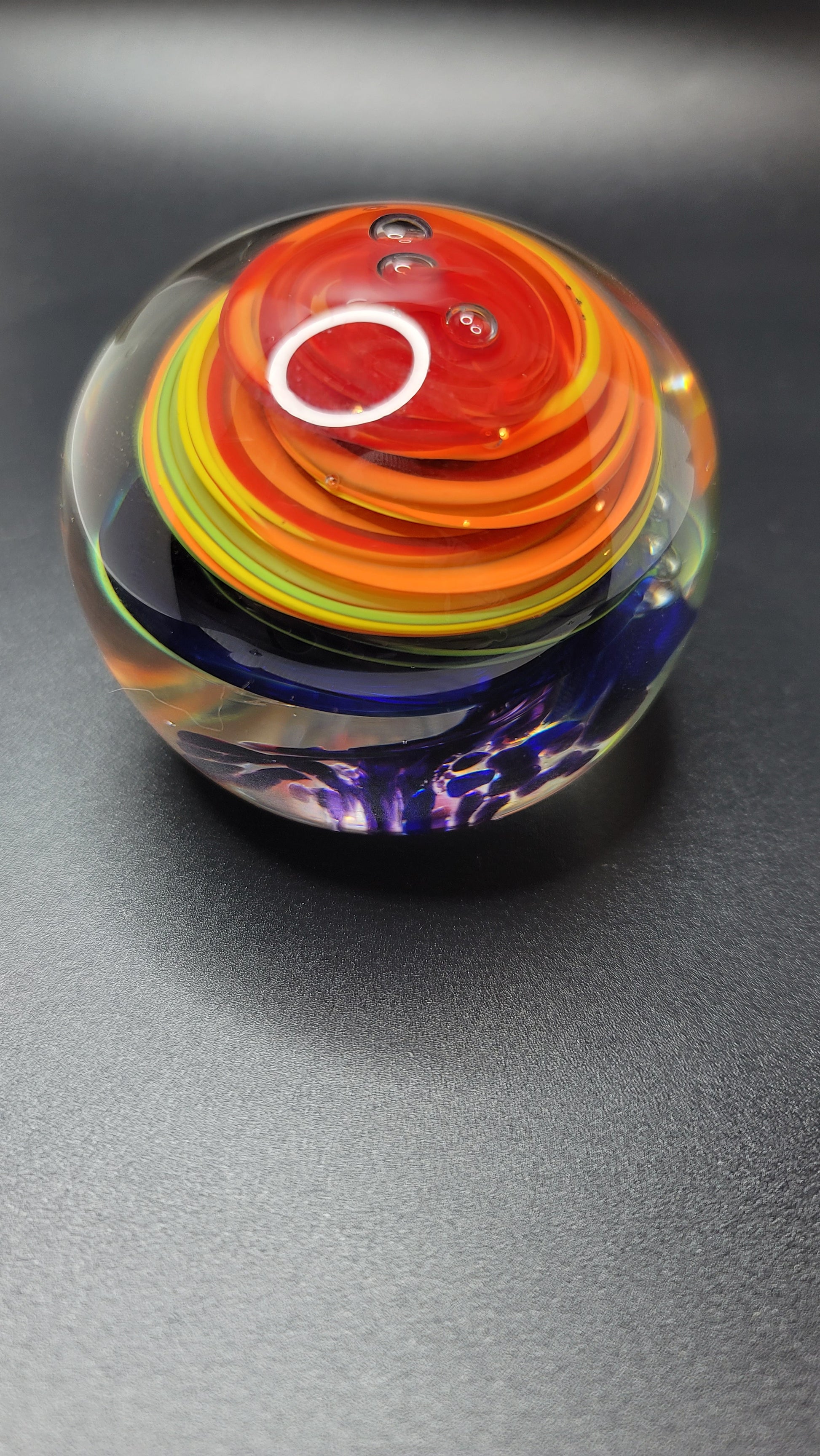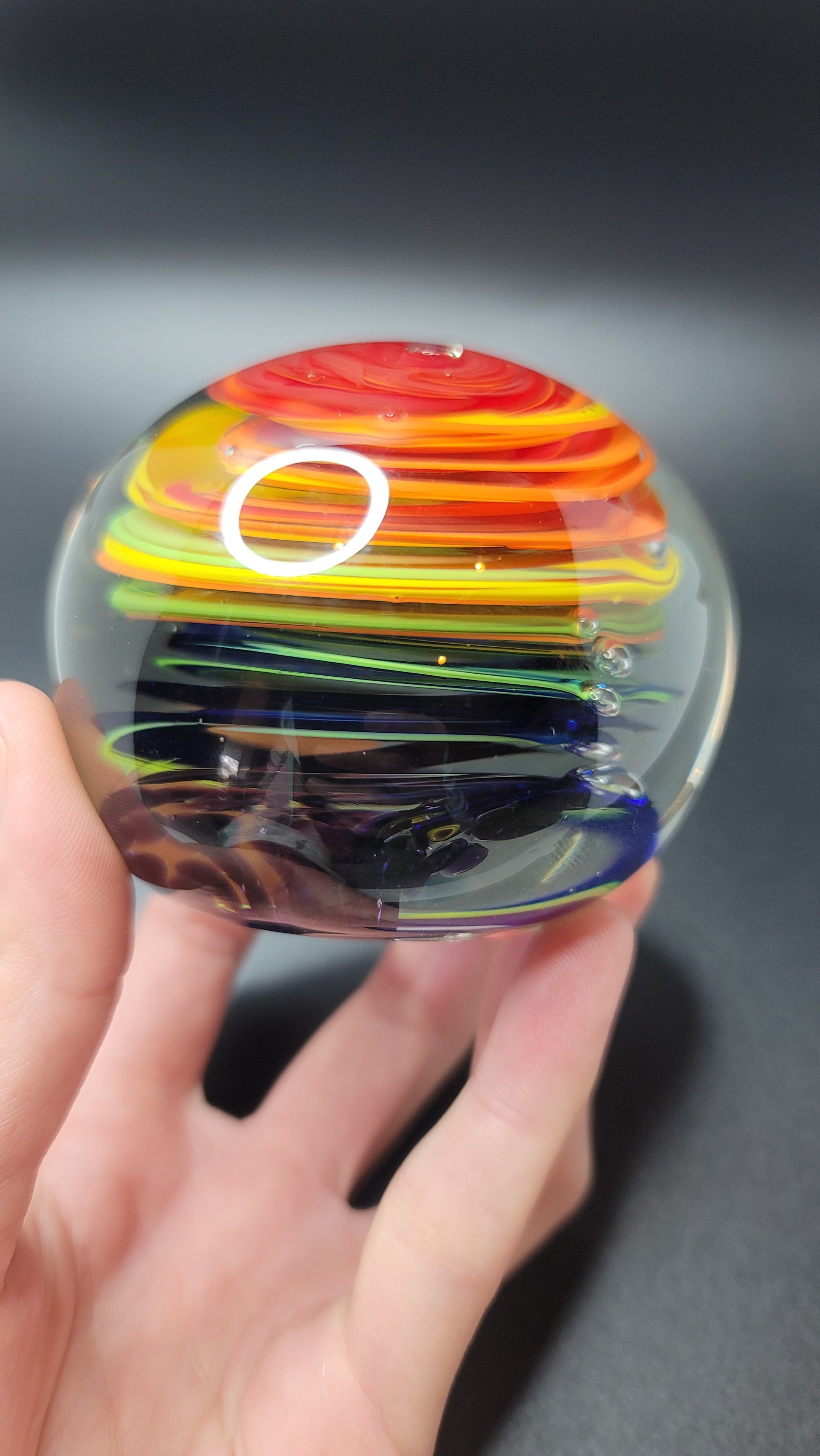 One of a kind Rainbow paper weight. About 3.5 inches in diameter.