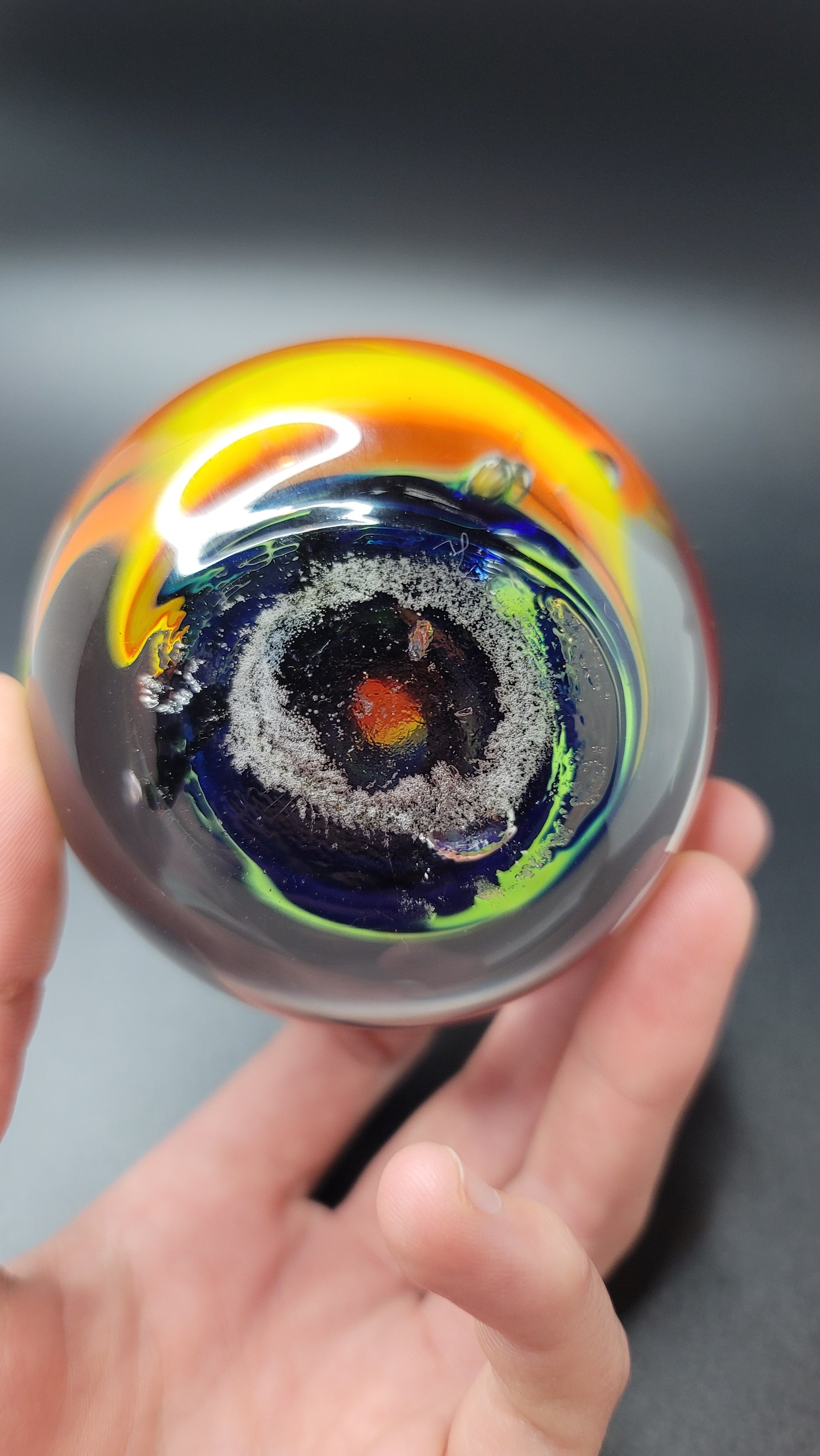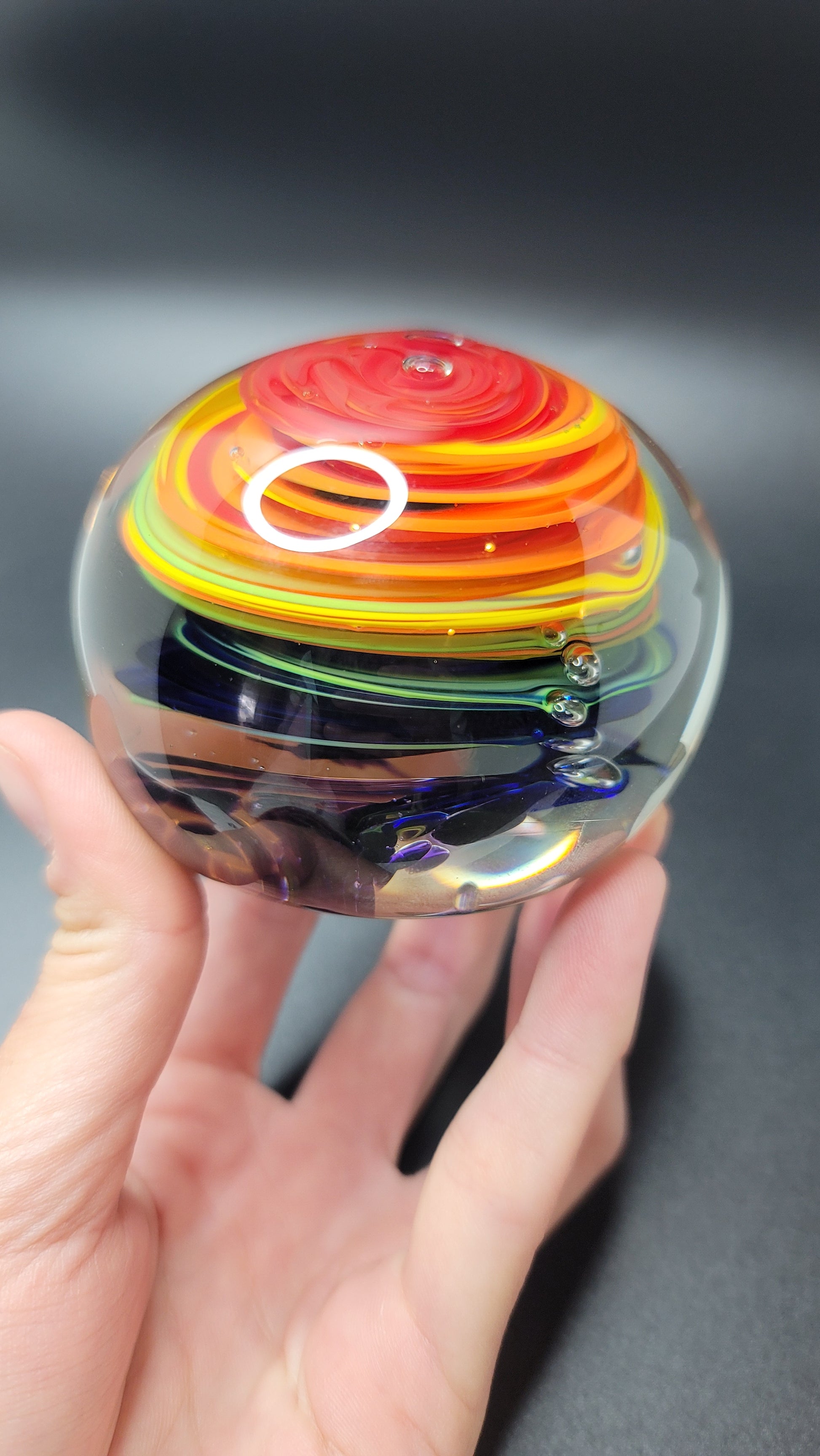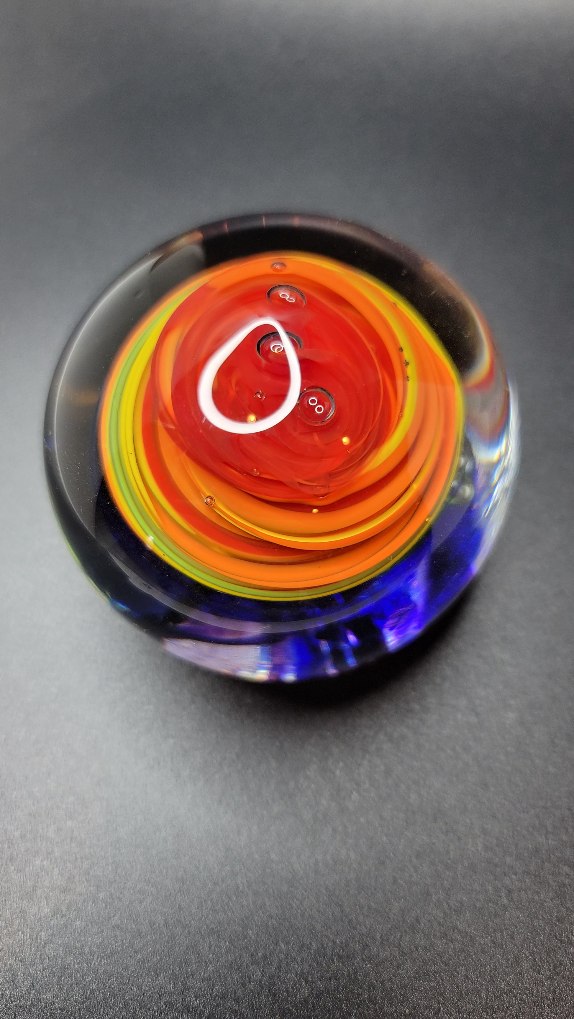 One of a kind Rainbow paper weight. About 3.5 inches in diameter.
