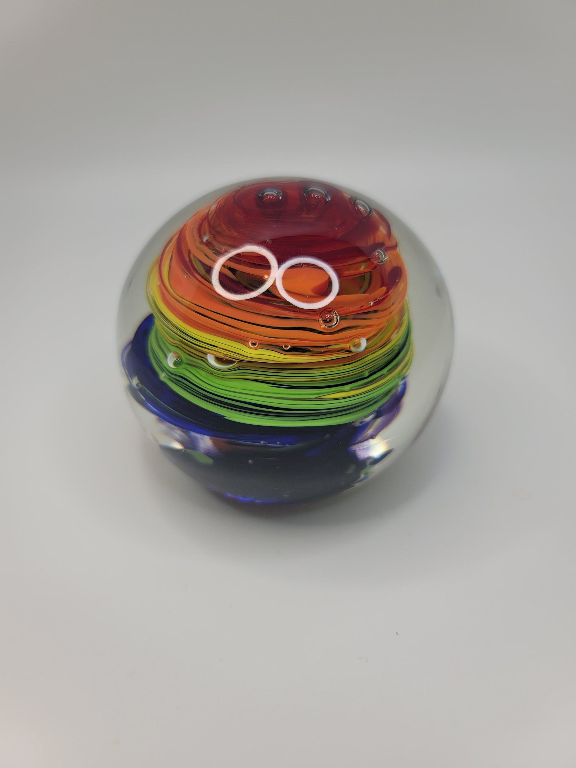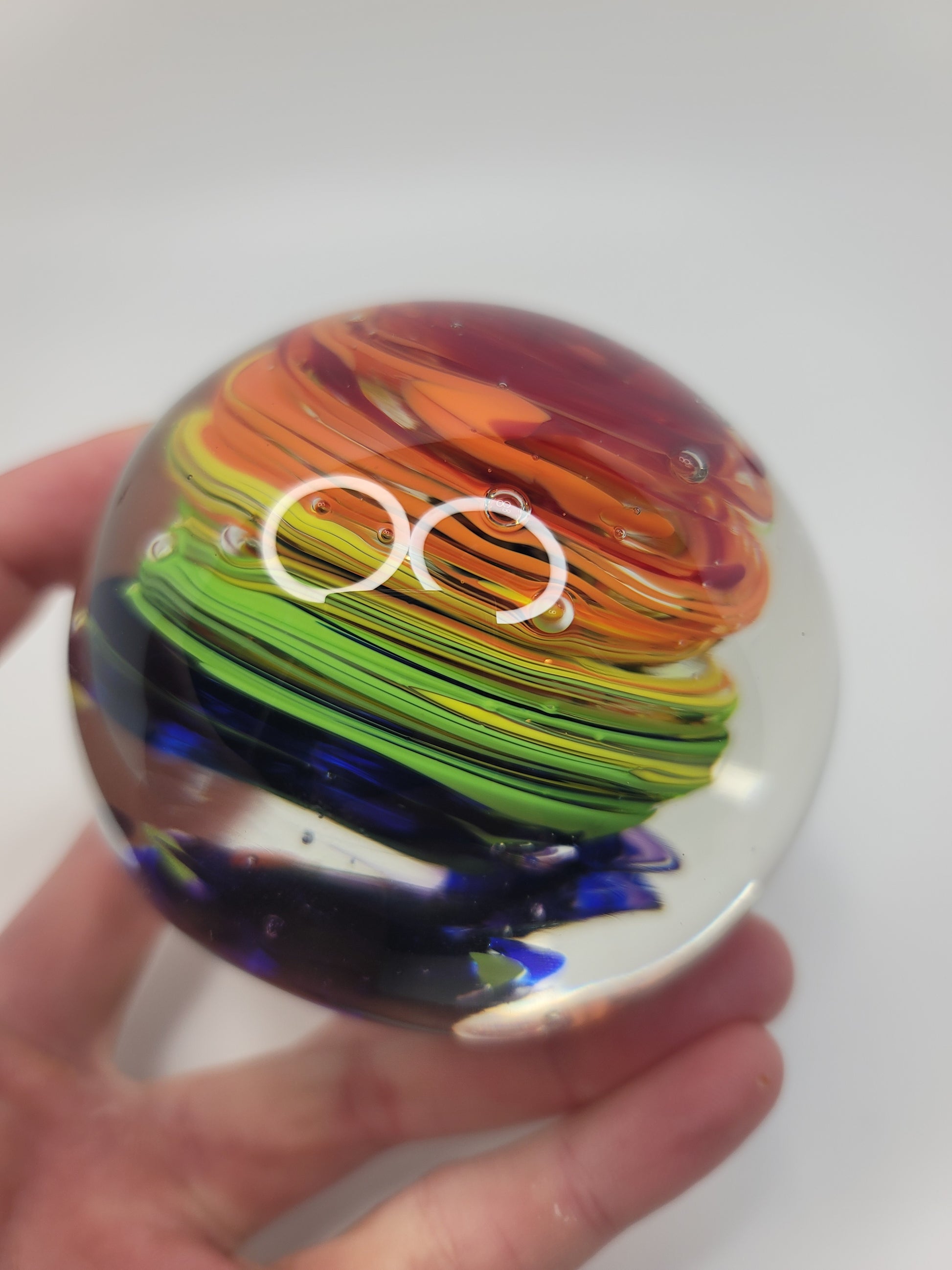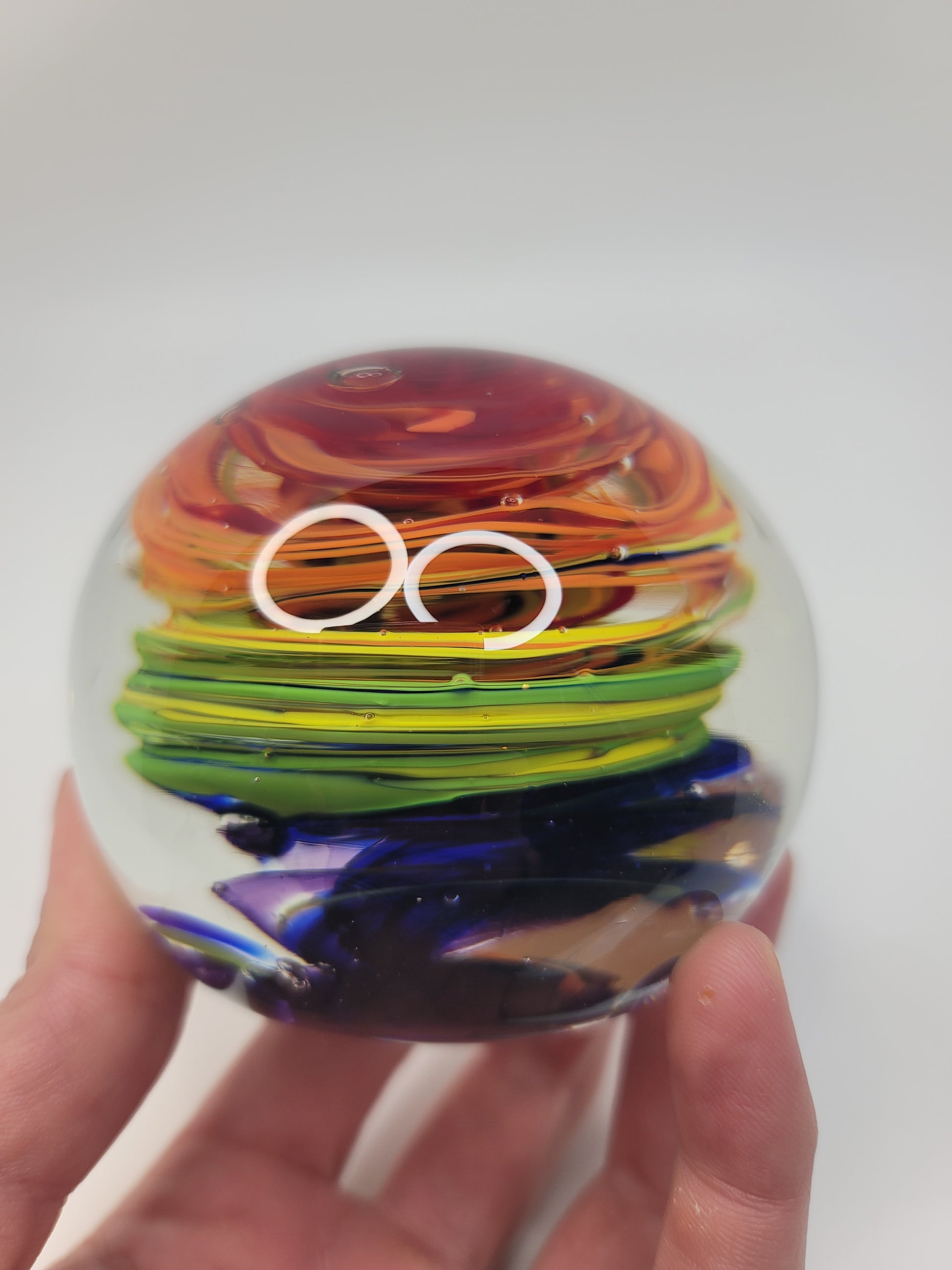 One of a kind Rainbow paper weight. About 3.5 inches in diameter.