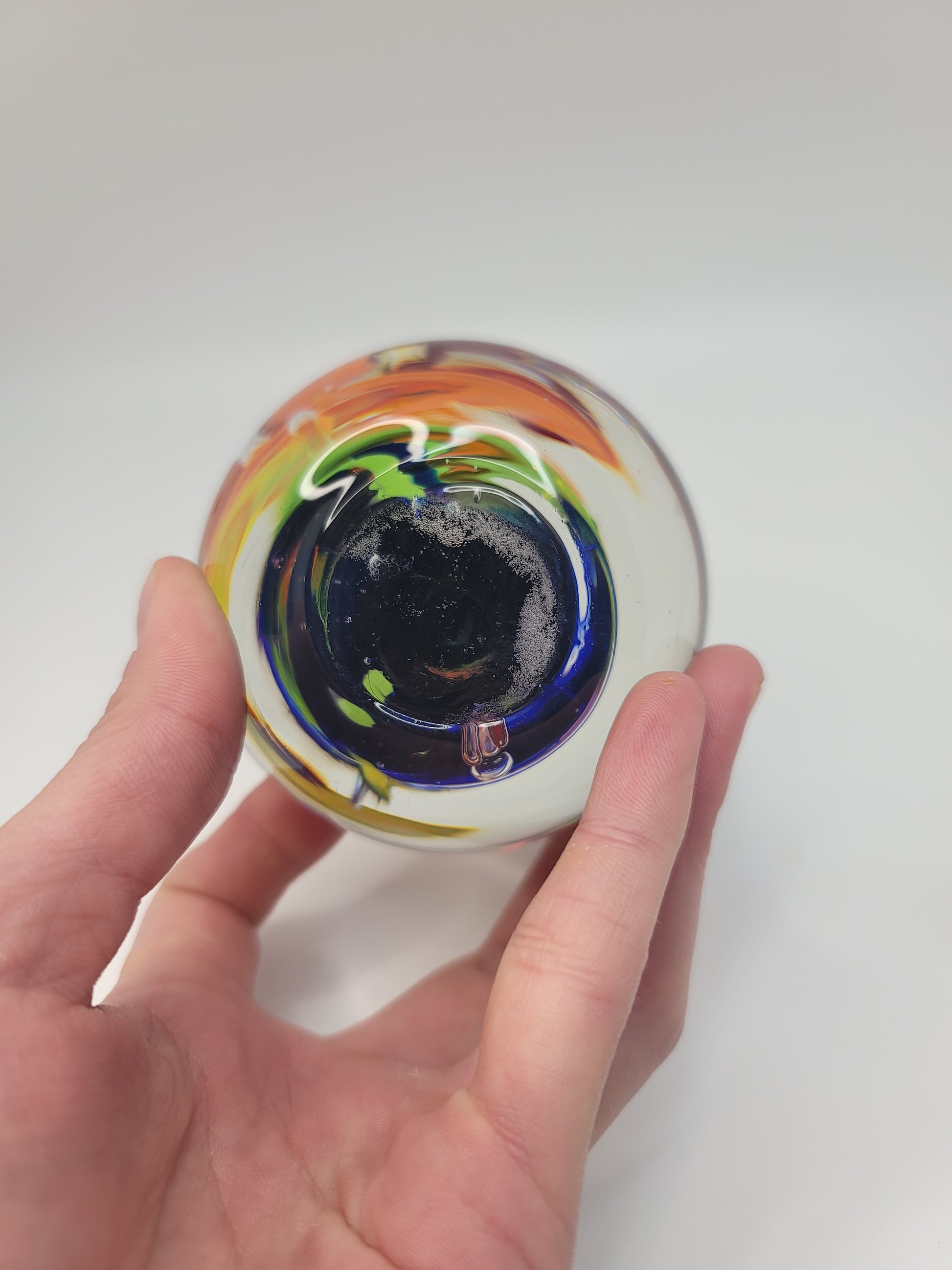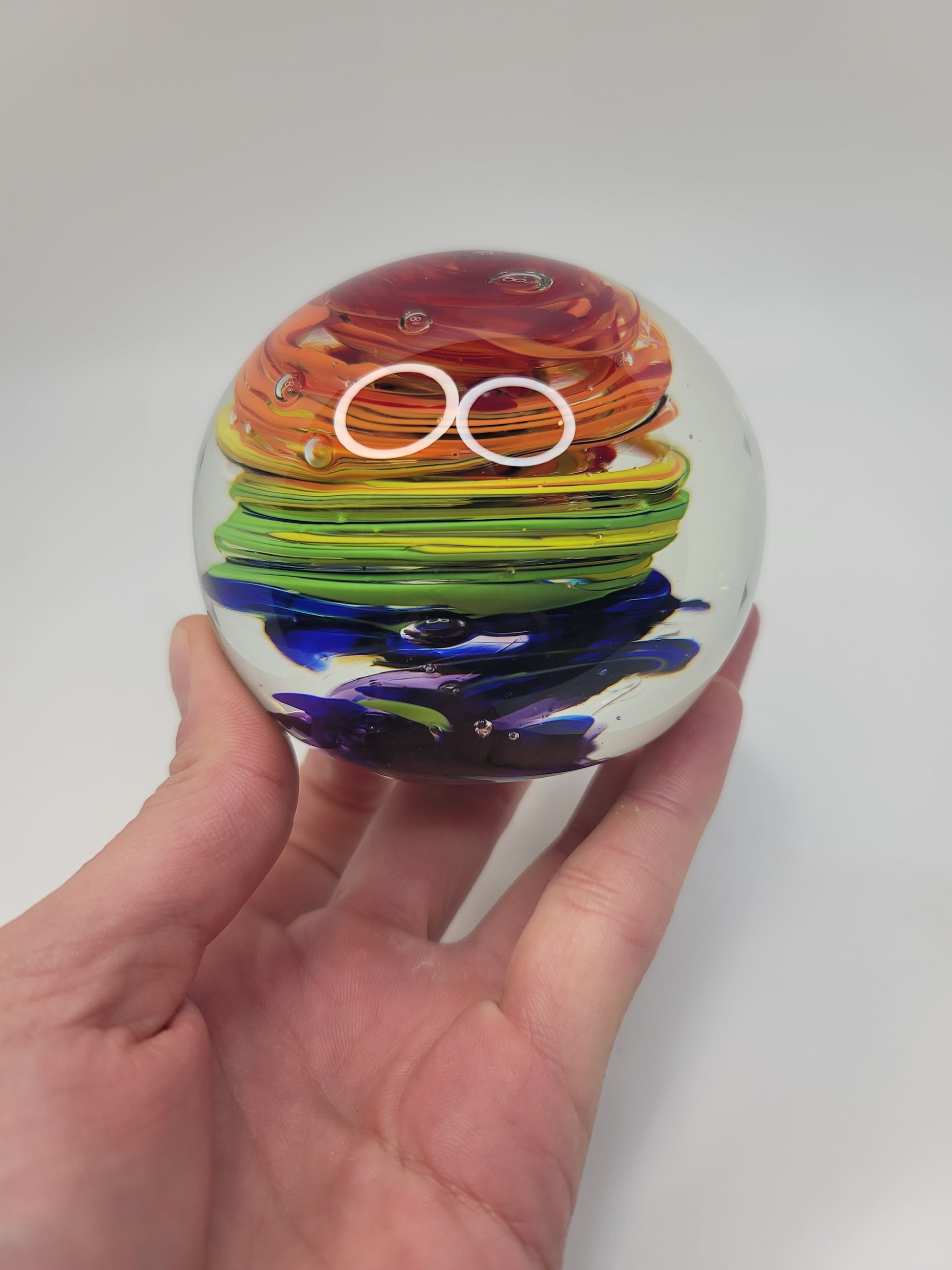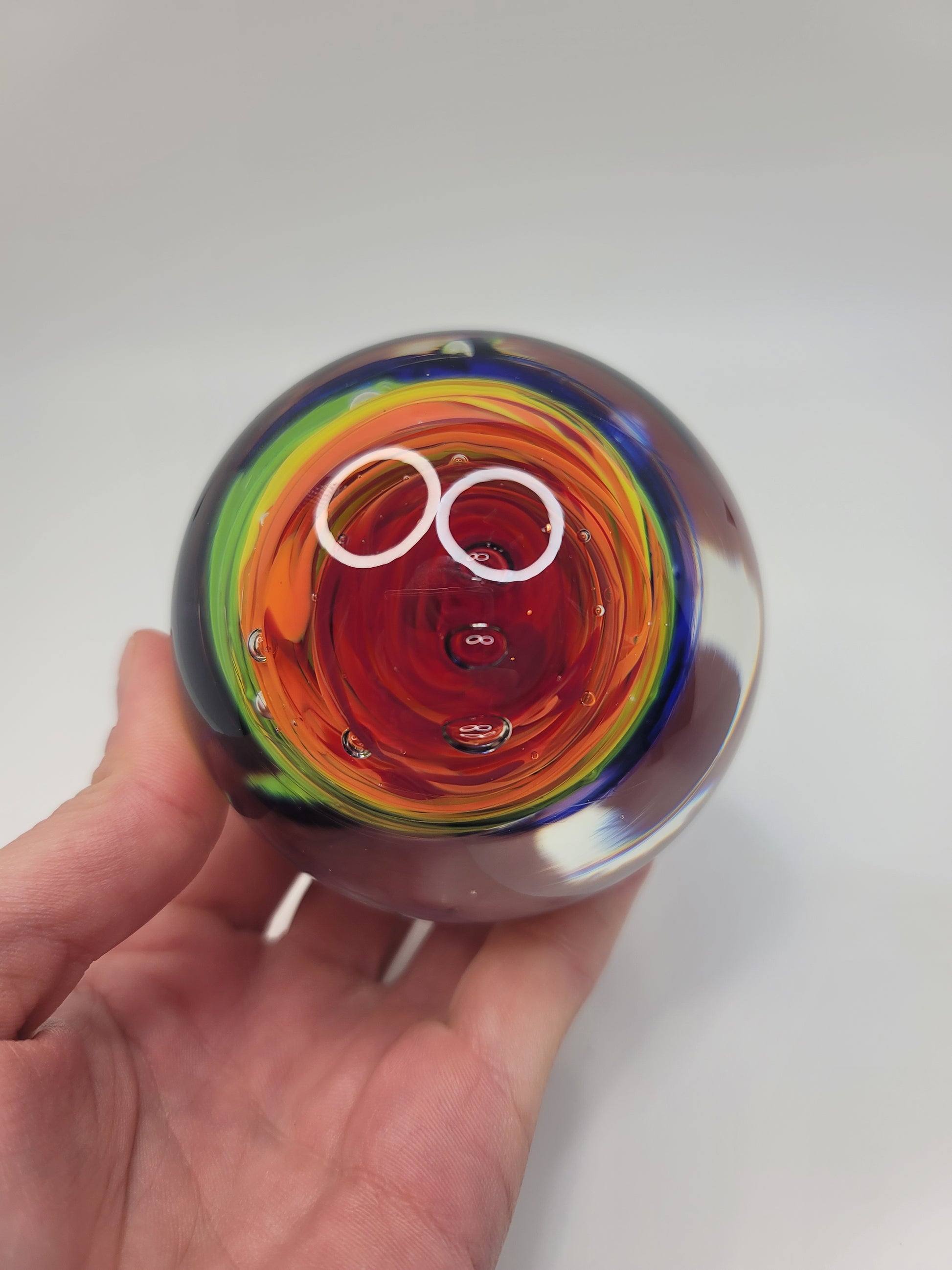 One of a kind Rainbow paper weight. About 3.5 inches in diameter.