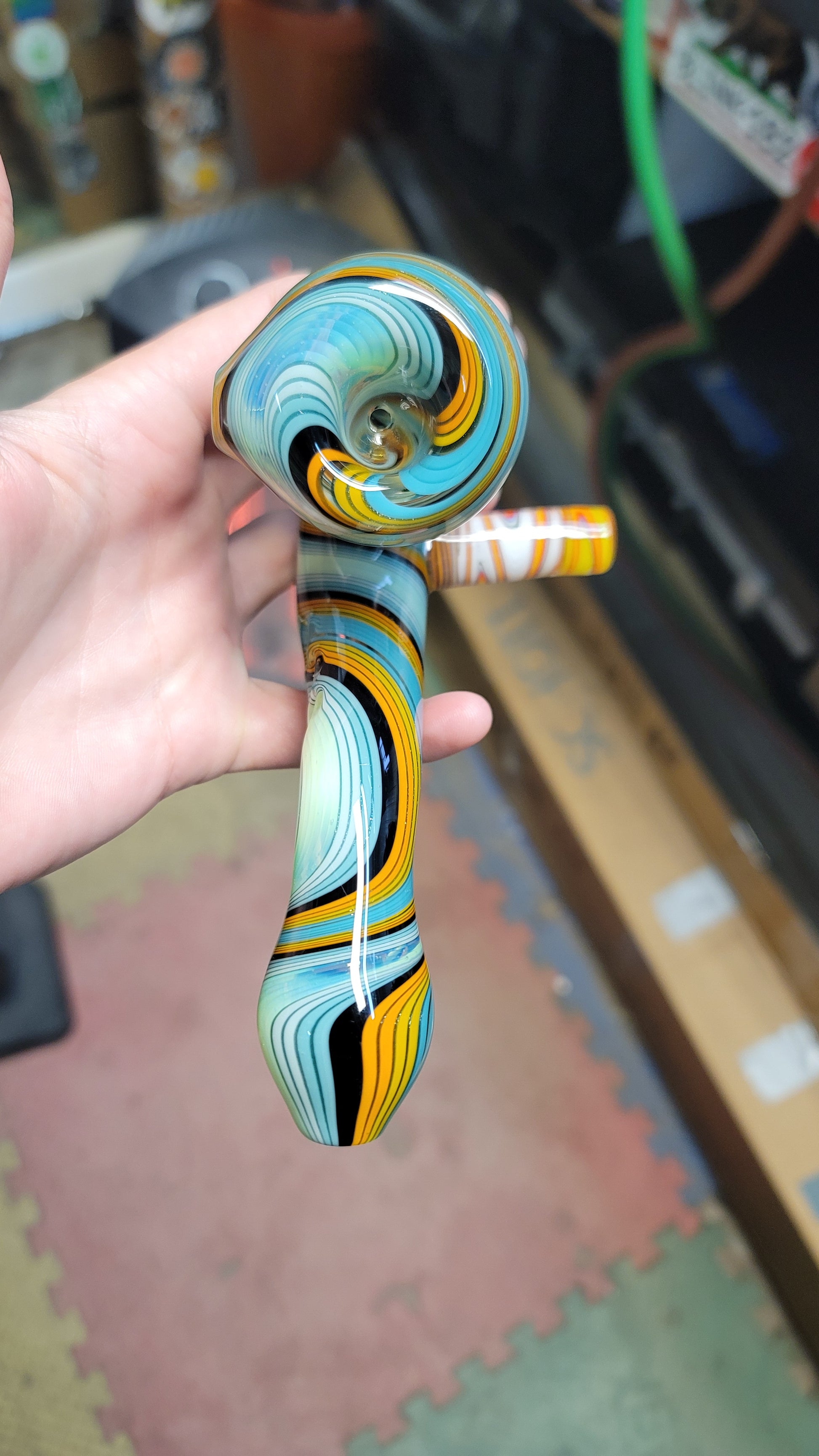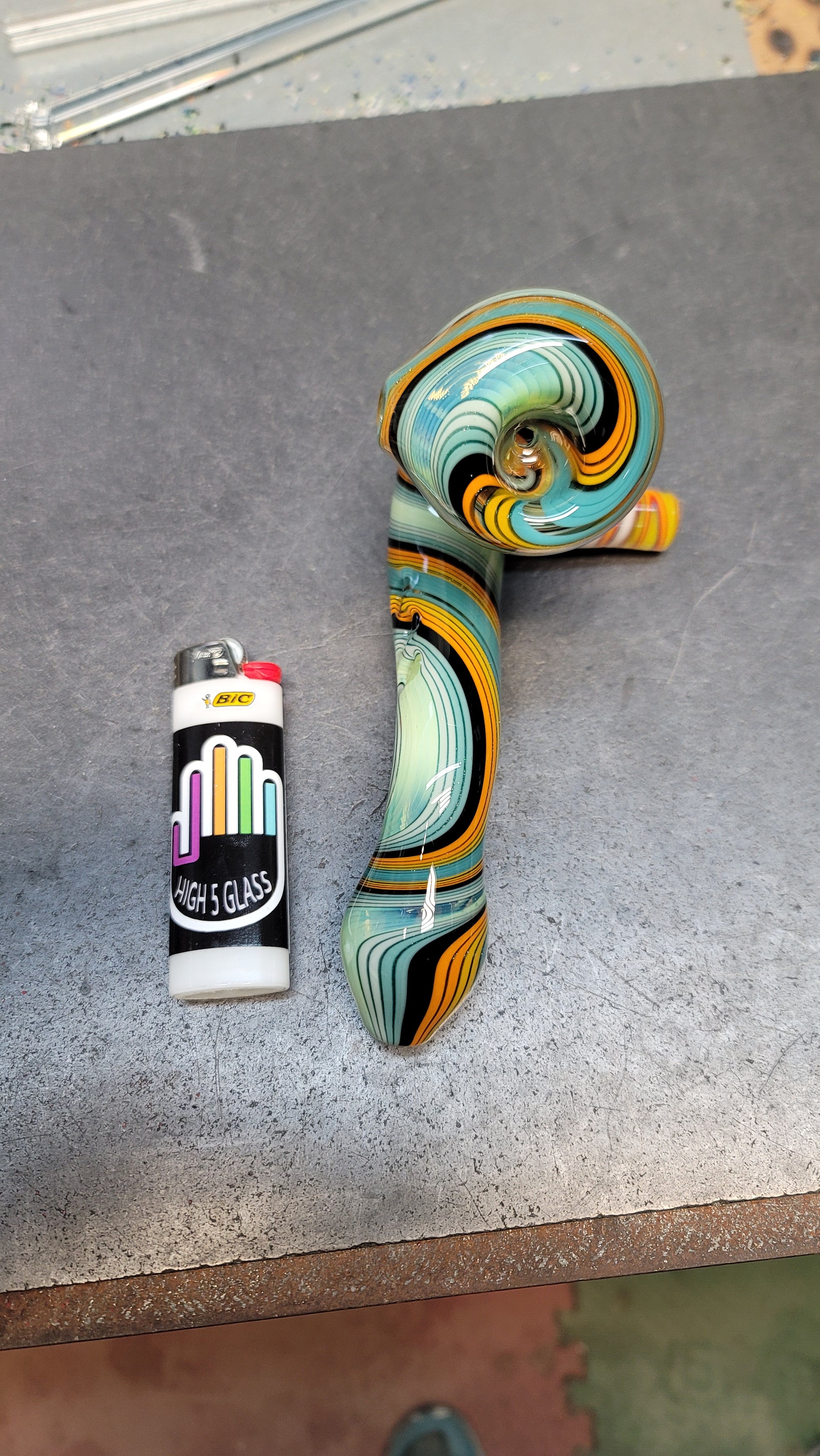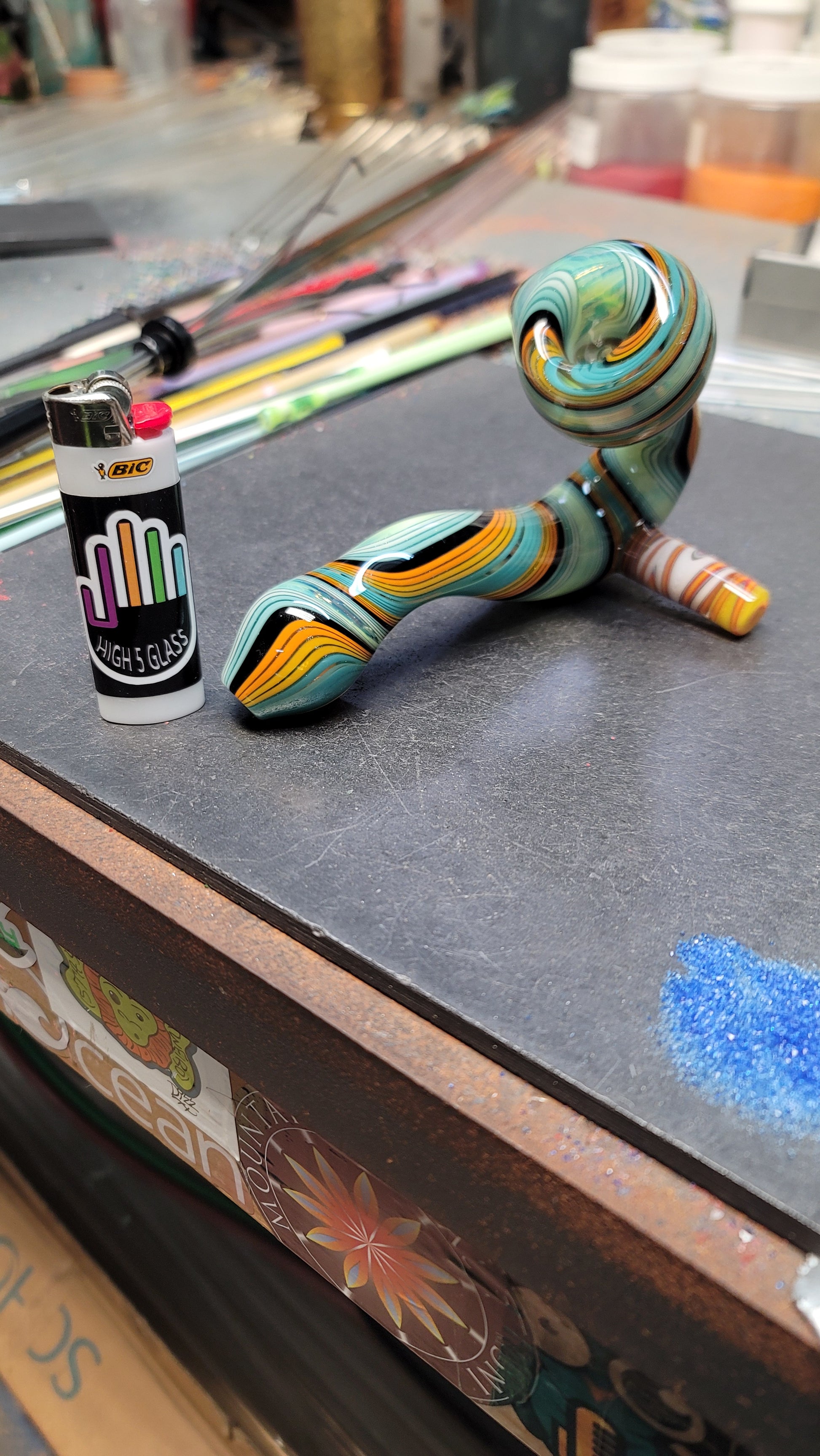 Very thick hand blown glass. Color purchased through Goldengate Glassworks